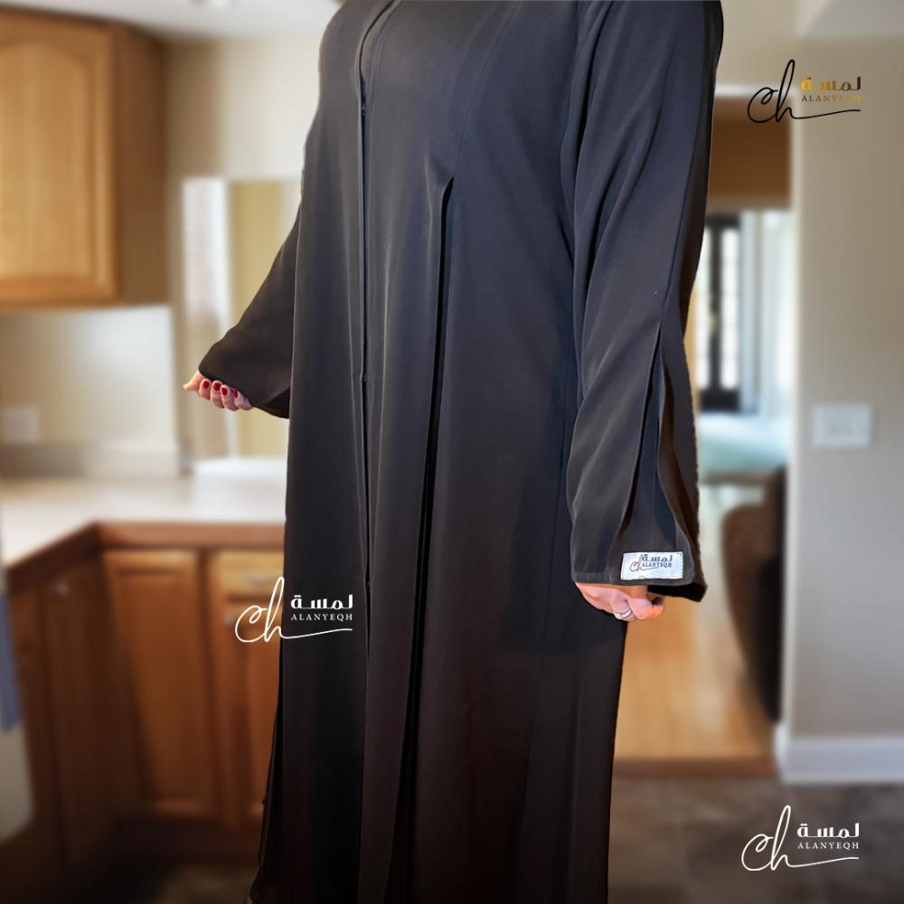 عباية نورة الأنيقة، مصنوعة من قماش انترنت عالي الجودة الذي يمنحك الراحة والمظهر العصري. تتميز العباية بقصة نص كلوش الأنيقة، مع موديل مفتوح بطقطق، مع كسرتين من الأمام والحلف، وكسره خفيفة في الكم لإضافة لمسة من التفرد والأنوثة.