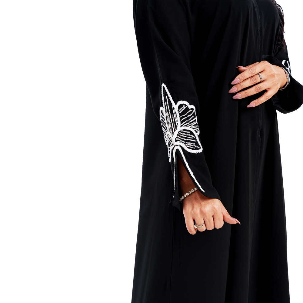تتميّز عباية فتون عبايه كم مفتوح من لمسة الأنيقة بتصميم أنيق ومتفرد، الذي يجمع بين الراحة والفخامة، مصنوعة من قماش كريب مستقبل ذو جودة عالية، تأتي العباية بقصة نص كلوش التي تمنحك حركة راقية وأناقة عصرية، الأكمام الضيقة التي تحتوي على فتحة تضفي مظهرًا عصريًا مع لمسات من الشغل اليدوي بالخيط مع سيلان، مما يميزها بإطلالة فاخرة. الطرحة المميزة بطرف فني تكمل إطلالتك الجذابة.