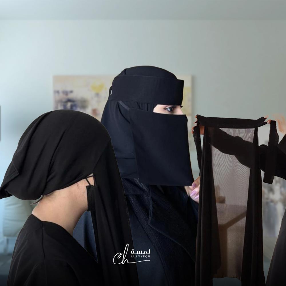 - نقاب مقاس وسط (الطول 12 إنش، العرض 12 إنش) بلون أسود فاحم مع خياطة دقيقة وتصميم فاخر.