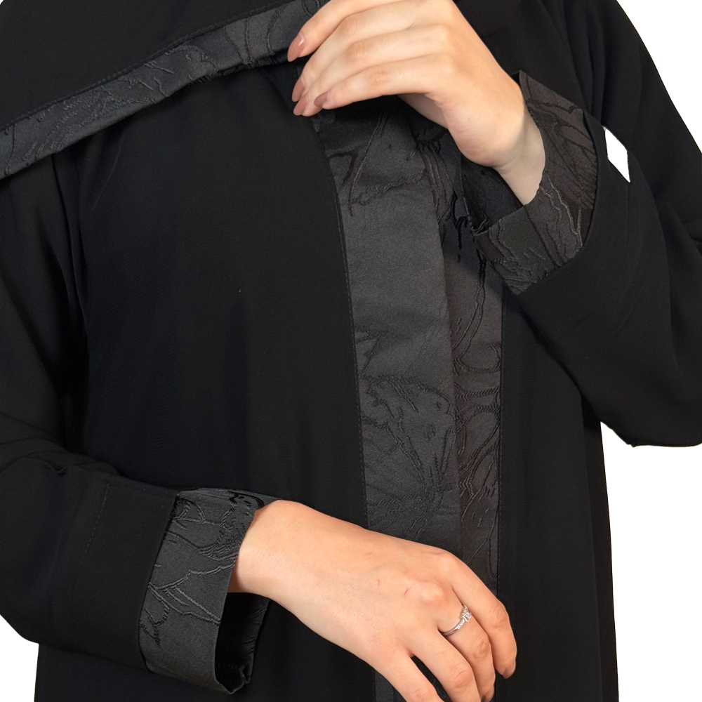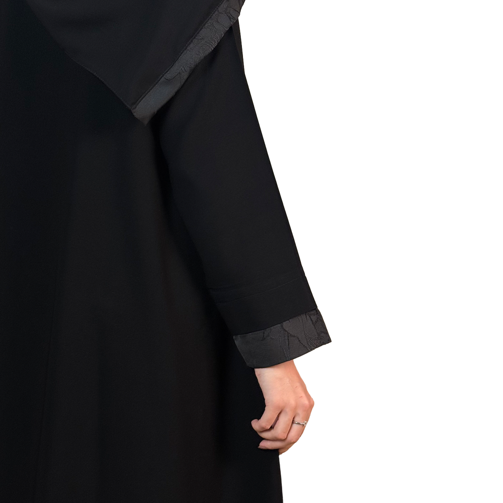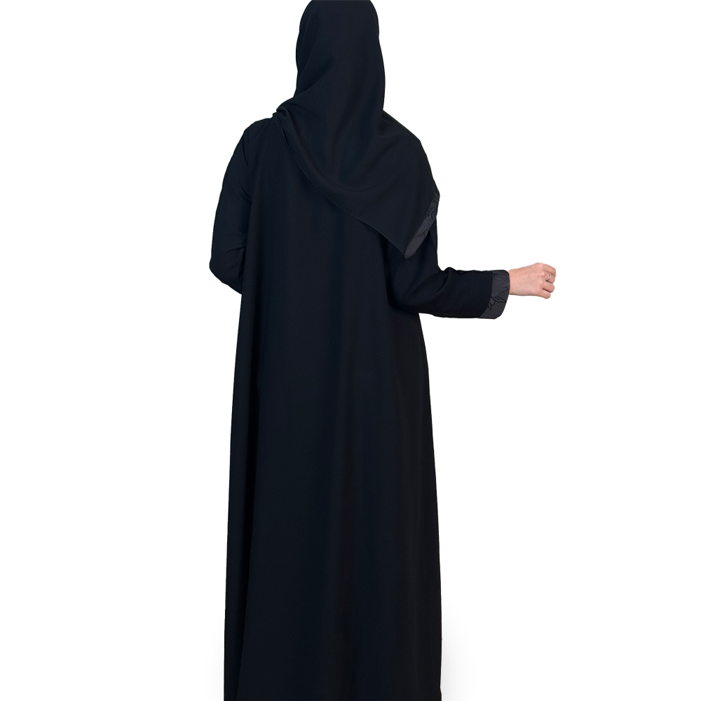 - تطريز أسود أنيق في الكم يبرز فخامة العباية